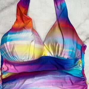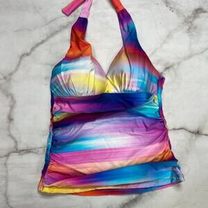 La Blanca Sunset Shores Halter Tankini Swim Top Size 4 Colorful Slimming New