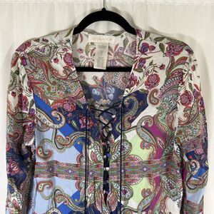 La Blanca Swim Coverup Women's Small Floral V Neck Long Sleeve Tunic tassels