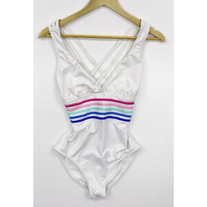 La Blanca Sz 4 Womens Spectrum Striped Rainbow Strappy One Piece Swimsuit White