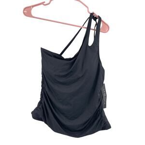 La Blanca Tankini Top Size 12 Island Goddess One Shoulder Keyhole Black NWT