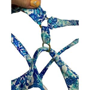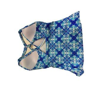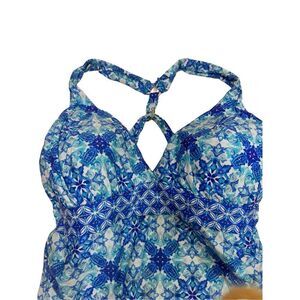 The print is exotic. The colors aquatic. Channel poetry in-ocean in this stunning halter tankini top with intricate tile designs.