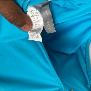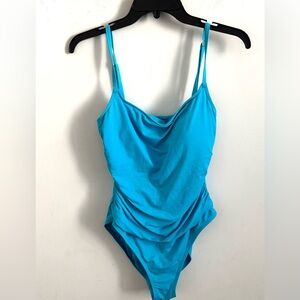 La Blanca Turquoise Ruched Coastal Beach Draped Front Adjustable Straps