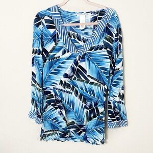 La Blanca Two Cool V-Neck Tunic Coverup Dress blue white Palm leaf pattern size XS