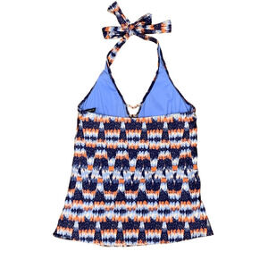 La Blanca Vision Quest Halter Tankini In Dark Blue, Orange and White - Size 8