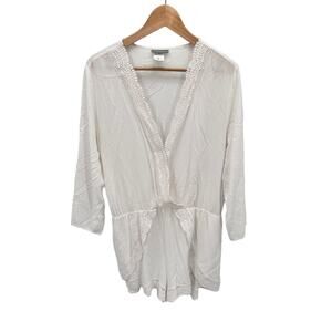 La Blanca White Crochet Lace Trim Romper Swim Coverup // L