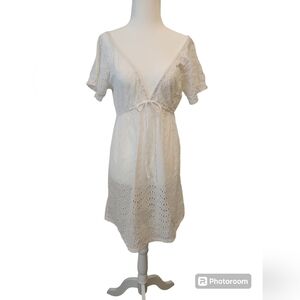 La Blanca White Short Sleeve Eyelet Swim Cover Up Size S