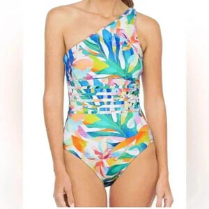 La Blanca Wild Tropic One Shoulder One Piece Swimsuit Size 12
