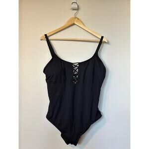 La Blanca Women’s 16 W Black Island Goddess Lace up One-Piece Strappy Swimsuit