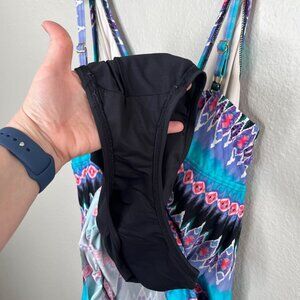 Good preloved condition La Blanca Womens 22 Blue Purple Geometric One Piece Skirted Swim Suit