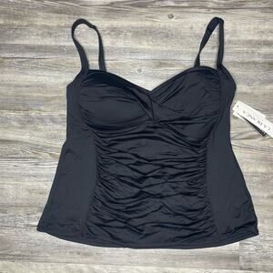 La Blanca Women's Black Island Goddess Sweetheart Ruched Tankini Swim Top sz 16W