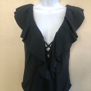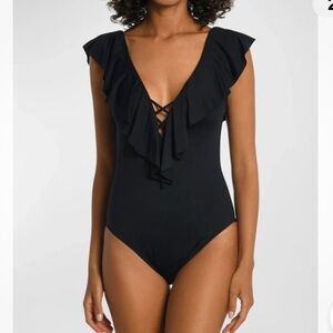 La Blanca Women’s Black Tummy Control Ruffled Lace-up One-PieceSwimsuit Size 12
