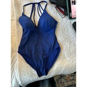 La Blanca Women's Blue Low Cut Padded Halter One Piece Swimsuit Size