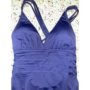 This one piece swimsuit offers a sleek and firm fit, with a tummy control panel that smooths and slims. The fixed multi-strap cross-back design keeps everything neatly tucked in for a secure swim experience.
