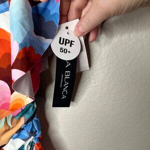 New with tag La Blanca Womens Multicolor Off-Shoulder One Piece Swimsuit Size 4 UPF 50+