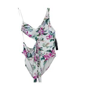 La Blanca Women's Mystic Palms Cutout One Shoulder One Piece Swimsuit SZ XL NWT
