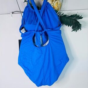 La Blanca Women's One Piece Swimsuit High Neck Keyhole Island Goddess Capri Blue