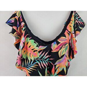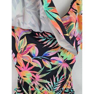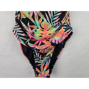 La Blanca Womens One Piece Swimsuit Size 6 Pink Leaves Off Shoulder Swim UPF 50+