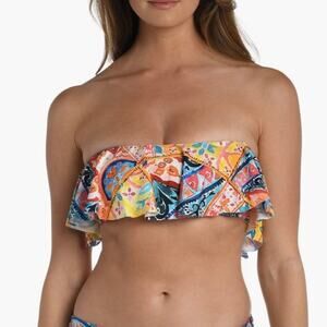 La Blanca Women's Ruffle Bandeau Bikini Swimsuit Top Multi Soleil Size 6