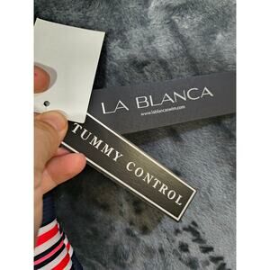La Blanca Women's Standard Lingerie One Piece Swimsuit in Indigo Sailor Stripe, size 12. This stylish swimsuit offers a comfortable and flattering fit, perfect for a day at the beach or pool. The indigo sailor stripe design adds a touch of classic nautical flair. Excellent choice for your next vacation or just soaking up the sun!