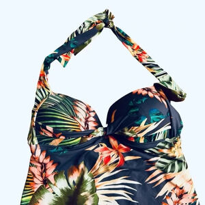 La Blanca Women's Swim Top Tankini Halter Tropical Green Blue Size 6 NWT