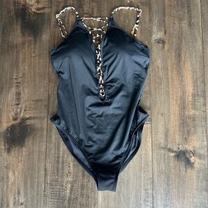 La Blanca Women's Wild Safari High Neck Lace Up Plus One Piece Swimsuit Size 14
