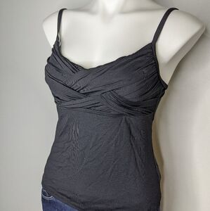 La Blanca black twist halter tankini top 10. Has a place for inserts but there are none included. Great detail on the top with the woven/braided style.