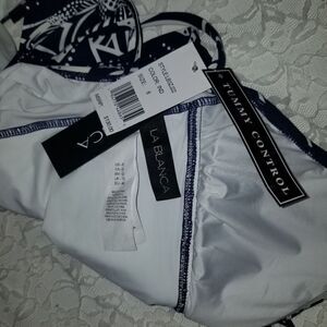 La Blanca blue flower Tummy Control One-Piece Swim, Size 8 NWT Retail $130
