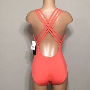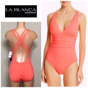 Deep scoop back with fixed multi-strap x-back design. 16W lost its tags. Has hygiene liner.