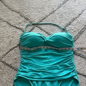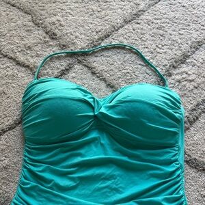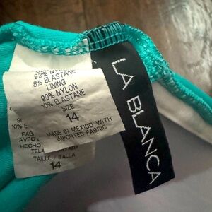 La Blanca one piece bathing suit blue teal Ruched Halter Strapless Swim Suit 14