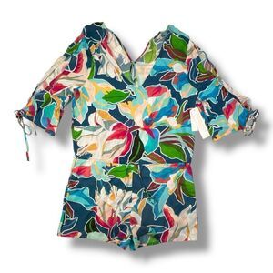 La Blanca Go With The Flo-ral Lightweight Coverup Floral Romper Size Medium
