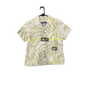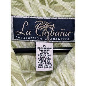 La Cabaña Palm Leaf Button Up Shirt Green Sz Small Short Sleeve Beach Resort