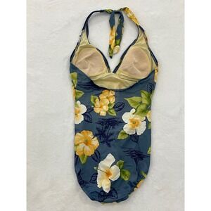 La Cabana Swimsuit Women's Size 10 Vintage 80's 90's Blue Hawaiian Flowers