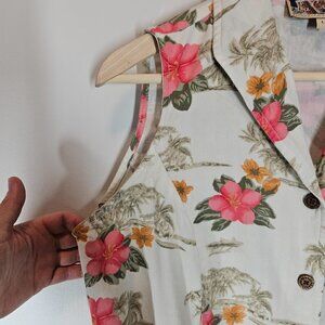 La Cabana Tropical Hawaiian Floral Cropped Vest Sleeveles Top Size Large