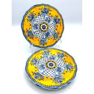 Le Cadeaux dinnerware is heavy weight melamine that is extremely durable, yet beautiful. Pieces are often mistaken for Italian ceramics. Resistant to chipping and breaking, Le Cadeaux is perfect for entertaining indoors or out, worry-free. Do not microwave. PreOwned but in wonderful condition. Appear to be a small tiny little rough areas on a few of the plates. See photo #4 not really a big deal...at least for me.