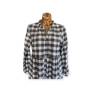 La Camicia maxi plaid dress Sz 44 US large black white long sleeve cott…