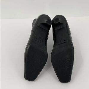 Black ankle boots with an elongated squared toe