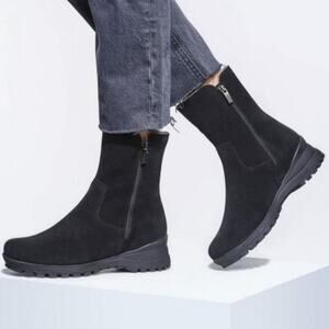 Step out in style with these elegant black suede boots. Perfect for any occasion, they offer both comfort and sophistication.