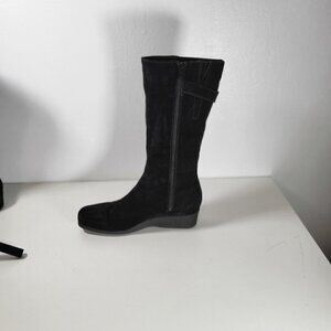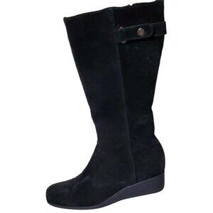Pre-owned La Canadienne Women's Suede Boots Wedge Heels Black Size 8M.
