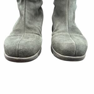 Cozy La Canadienne black suede knee-high boots in size 6.5W. Made in Canada with a slouch shaft, ultra-soft faux fur lining, and a flexible slip-resistant sole—perfect for winter warmth and everyday comfort. Preloved with light wear to uppers/soles but overall great condition. Approx: 16” shaft height, 7” opening width (14” circumference), round toe, cushioned footbed.