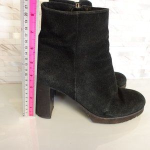 La Canadienne Boots Womens Leather 10 Black Ankle Booties Heel Zip Suede Myranda