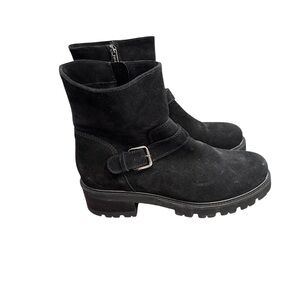 La Canadienne Kian Waterproof Buckle Bootie in Black Suede Women's 9