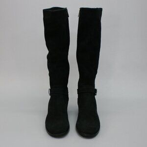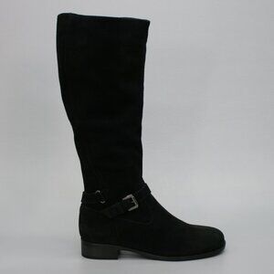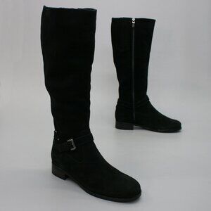 La Canadienne Ladies 7 Black Nubuck Suede Side-zip Tall Buckle Strap Boots 36164