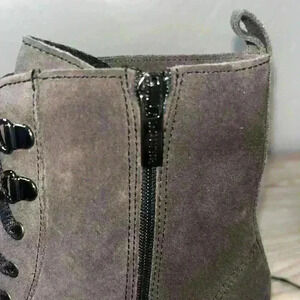 Step out in style with these La Canadienne Prunella Combat Boots. Made from high-quality suede, these boots are waterproof and perfect for any season. The classic round toe and lace-up closure provide a comfortable fit, while the high block heel adds a touch of elegance to your outfit. These ankle boots are not only perfect for work, but also for casual occasions, parties, or even when traveling. With a vintage-inspired design, these boots are a must-have for any fashion-conscious woman. Available in size 7.5M, these boots are sure to make you stand out in the crowd. Original price $550.