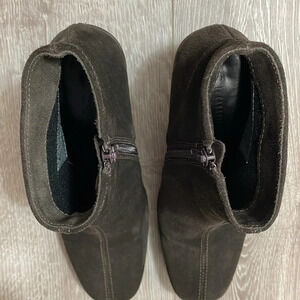 La Canadienne Waterproof Suede Heeled Square Toe Ankle Boots Dark Brown in size 8M. Great preowned condition. Rubber sole, warm microfiber lining, side zipper, stacked heel, waterproof Italian suede, handmade, stitched details. Please see photos for approximate measurements and details. Item may show difference in color based upon photography and perception. Photos are part of the description, as everyone’s level of condition may vary. From smoke free and pet free home. All packages are shipped the same or next business day.