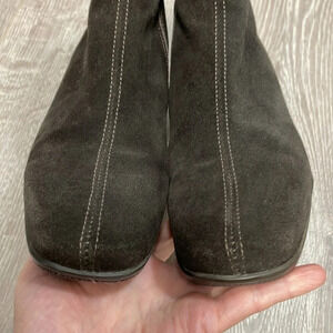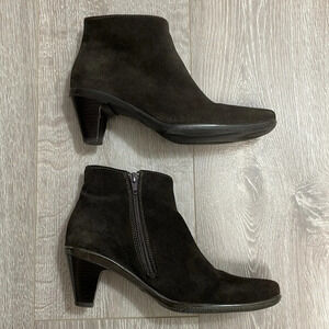 La Canadienne Waterproof Suede Heeled Square Toe Ankle Boots Dark Brown 8M