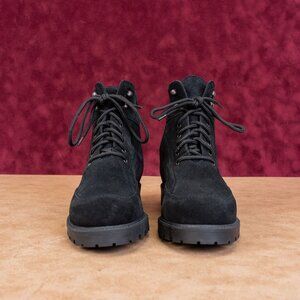 La Canadienne Women Lucky Black Suede Lace-up Waterproof Ankle Combat Boots sz 7