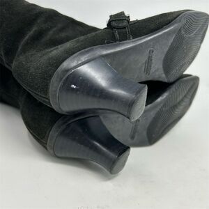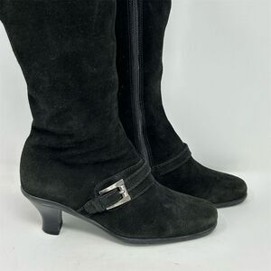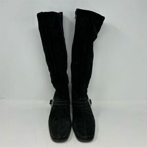 La Canadienne Women's Black Knee High Boots Size 8 Mid Heel Buckle Square Toe