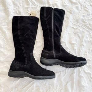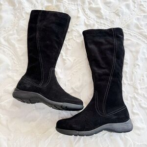 Ultra soft microfiber lining comforts a tall leather boot with a waterproof finish to stylishly endure wet and wintry weather.