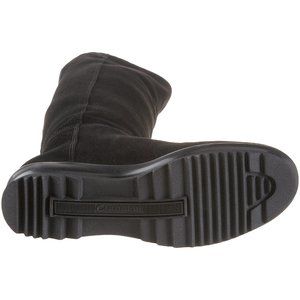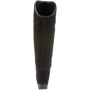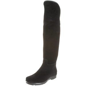 Tall boot in suede featuring over-the-knee front opening with contrast leather trim