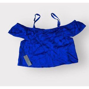 La Causa Neptune Cry Baby Tank Top Satin Royal Blue Ruffle Women's Large NWT LaCausa